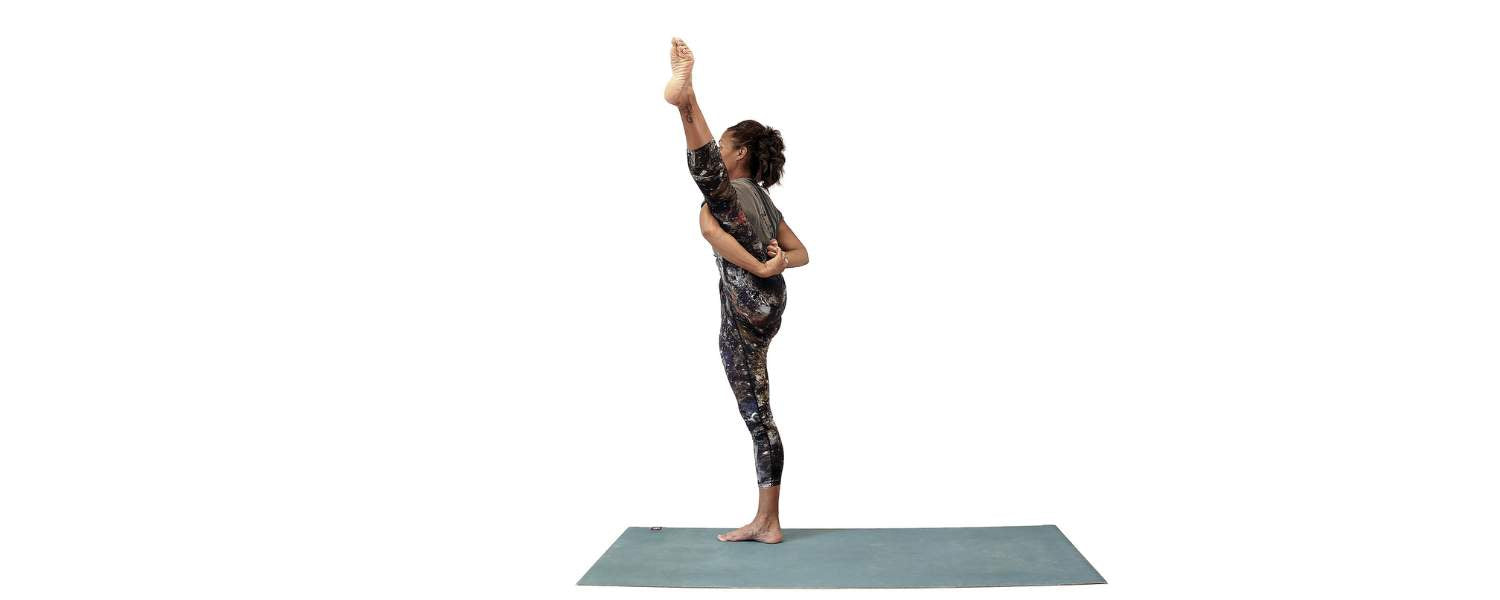 Additionally, straighten your standing leg and open your shoulders while pointing the toes of your lifted leg and endeavoring to straighten it. Besides enhancing energy, this posture can be seamlessly integrated into flow yoga sequences.