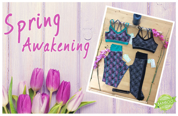 Are you ready for spring? Bring the beauty of the season into your active wardrobe with Green Apple new Spring Awakening Collection. Romance your active wear with eco-bamboo prints – a first to make sustainable prints on bamboo fabric! Who says spring colors are all about pastels? Check out the refreshing color palette used for the collection—Aruba Blue, Sliver, Dynasty Green, and Black.